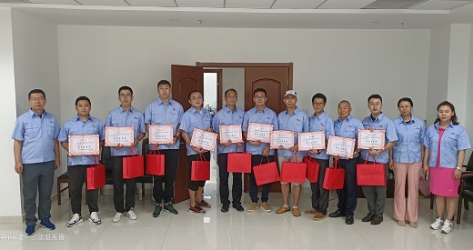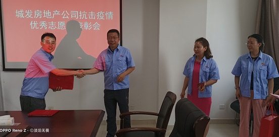 公司對勇于抗擊新冠肺炎疫情的15名志愿者進行了表彰。經(jīng)理李錚、副經(jīng)理韓雪峰同志為志愿者頒發(fā)了獎狀和紀(jì)念品。