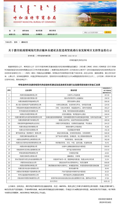 國家財政部與商務(wù)部聯(lián)合發(fā)布《關(guān)于開展2018年流通領(lǐng)域現(xiàn)代供應(yīng)鏈體系建設(shè)的通知》(財辦建〔2018〕101號),商務(wù)部發(fā)布《關(guān)于2018年流通領(lǐng)域現(xiàn)代供應(yīng)鏈體系建設(shè)試點工作有關(guān)要求的通知》(商建司函[2020]104號),經(jīng)過評審,呼和浩特市成為試點城市,納入財政資金支持范圍。呼市商務(wù)局聯(lián)合市財政局組織開展了"呼和浩特市流通領(lǐng)域現(xiàn)代供應(yīng)鏈體系建設(shè)及促進(jìn)商貿(mào)流通行業(yè)發(fā)展項目"申報工作,開始全面推進(jìn)流通領(lǐng)域現(xiàn)代供應(yīng)鏈體系建設(shè)試點示范工作。