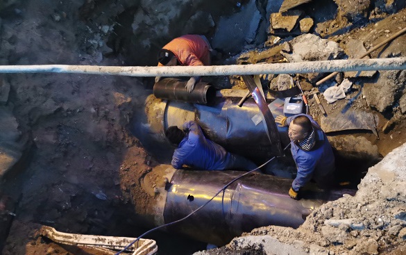 此次搶修采用DN800管道做"袖套"進行管道焊接修復(fù),為整個搶修爭取了近1天的時間,最大程度保障了轄區(qū)熱用戶的供暖,為百姓的冬天筑起了一道最有力、最堅固的溫暖防線。