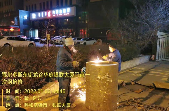 為確保用戶盡快恢復(fù)供熱,搶修人員相互配合,放棄休息,全力以赴進行搶修,經(jīng)過30小時作業(yè),終于順利完成漏點修復(fù),于1月3日21時30分,一次管網(wǎng)恢復(fù)供熱。尚東楓景、竹園東區(qū)、玉錦軒、巨海城八區(qū)等100萬平方米熱用戶的溫暖得到了保障。而由于長時間的不停歇焊接,漏點修復(fù)后,焊接人員的手都腫了無法伸直。