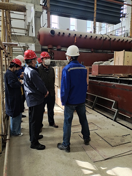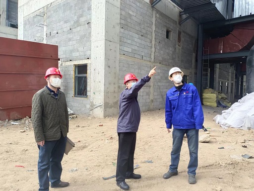 在三合村分公司200T燃煤熱水鍋爐等量替換工程現(xiàn)場,楊杰詳細(xì)聽取了工程的進(jìn)展及復(fù)工復(fù)產(chǎn)工作準(zhǔn)備情況,并針對(duì)目前存在的困難和問題,現(xiàn)場辦公研究解決方案。