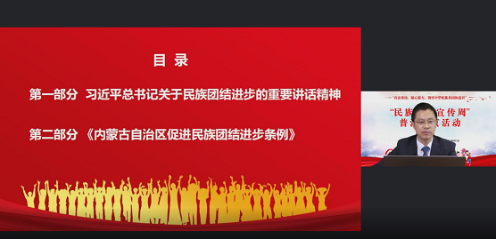 本次培訓以良法善治,凝心聚力,鑄牢中華民族共同體意識為主題,中國政法大學劉東剛博士圍繞習近平總書記關于民族團結(jié)進步的重要講話指示精神、《中國共產(chǎn)黨統(tǒng)一戰(zhàn)線工作條例》《內(nèi)蒙古自治區(qū)促進民族團結(jié)進步條例》《中華人民共和國國家通用語言文字法》《內(nèi)蒙古自治區(qū)實施〈中華人民共和國國家通用語言文字法〉辦法》《民族區(qū)域自治法》《城市民族工作條例》的重點亮點內(nèi)容進行了解讀。
