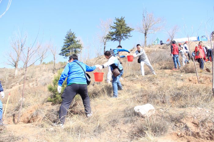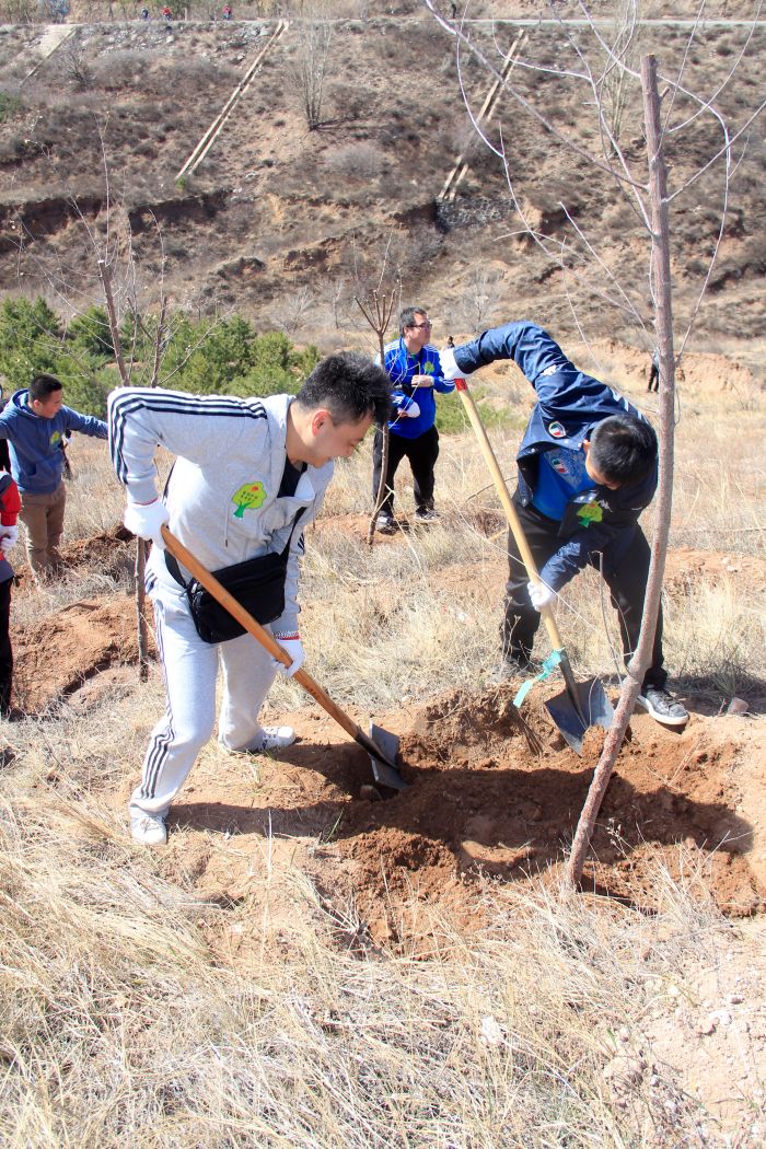 活動現(xiàn)場,公司團員青年在團委副書記郭振宇的帶領下,有序的加入到植樹活動的行列中,植樹現(xiàn)場一派熱火朝天,大家干勁十足,配合默契,三人一隊,五人一組,忙的不亦樂乎。在綠化技術人員的指導下,大家分工協(xié)作,有的挖坑,有的扶苗,有的培土到處都是忙碌的身影。大家不顧鞋褲上的泥土,一起揮鍬揚土,把一棵棵樹苗穩(wěn)穩(wěn)地栽好,并精心地把土踩實,為它們澆灌生命之水,經過一個半小時的辛勤勞動,共栽植30余棵山桃樹,大家用自己的行動和汗水把青年林裝點得更加生機盎然。