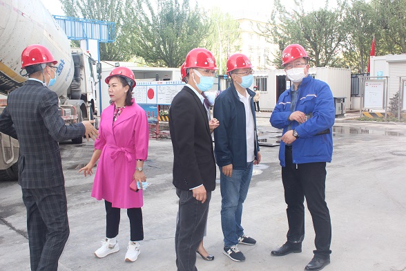 儀式結(jié)束后,一行人來(lái)到位于金牛座底商的售樓部參觀檢查裝修情況。目前,該項(xiàng)目3-10層二次結(jié)構(gòu)已施工完成,4、5層墻體抹灰全部完成,樣板間裝修施工正在進(jìn)行。