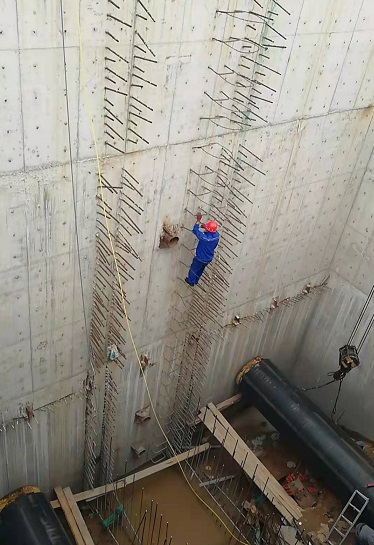 趙永軍介紹,現(xiàn)井底的工人們正在進行管道的焊接工作,每天可完成四道焊口,從焊接,探傷,PE保溫外護管的熔接,到打孔注料,流水施工,多作業(yè)面同時進行?,F(xiàn)以單向每天18米的速度推進,截至目前,雙管推進約180余米,工程建設(shè)已完成過半。管道平行推進完工后,可進行管道噴砂、隔墻混凝土澆筑及恢復綠化等后續(xù)工程。