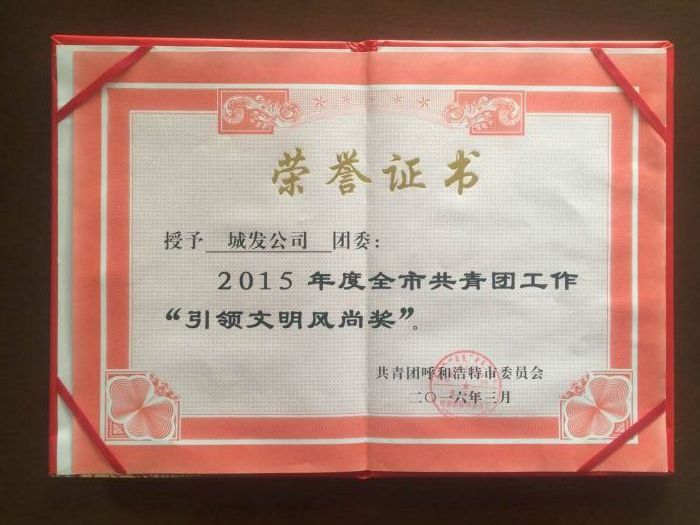 2016年315日,下午3時(shí),在市政府黨政辦公大樓207會(huì)議室舉辦召開了;共青團(tuán)呼和浩特市十六屆三次全委會(huì)議及市少工委五屆六次會(huì)議。會(huì)議上,全市23個(gè)團(tuán)委進(jìn)行了表彰。城發(fā)公司團(tuán)委榮獲;全市共青團(tuán)工作引領(lǐng)文明風(fēng)尚獎(jiǎng)、;信息工作先進(jìn)獎(jiǎng)兩個(gè)單項(xiàng)獎(jiǎng),獲得;2015年年度全市共青團(tuán)工作綜合獎(jiǎng)。