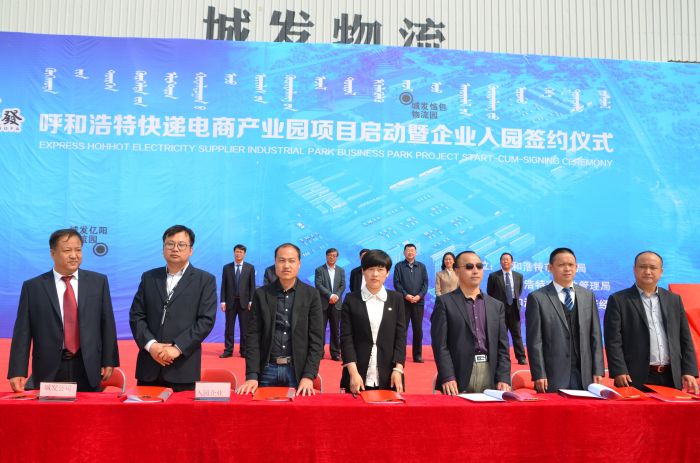 4月26日上午,呼和浩特快遞電商產(chǎn)業(yè)園項目啟動暨企業(yè)入園簽約儀式在城發(fā)惱包物流園區(qū)舉行,順豐、中通、宅急送、百世、申通、中通、圓通、韻達(dá)等16家快遞企業(yè)與城發(fā)公司簽約,計劃分二期入駐惱包物流園區(qū)。