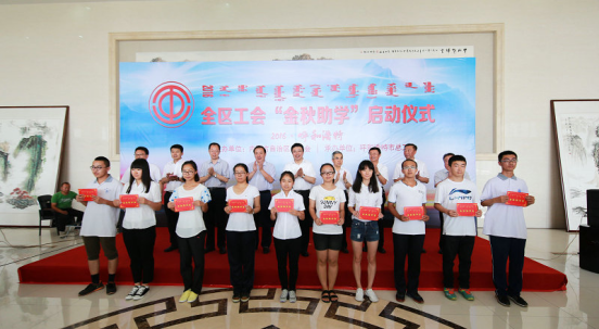 8月5日上午,自治區(qū)、呼市兩級工會舉行2016年金秋助學(xué)啟動儀式,幫助家庭困難品學(xué)兼優(yōu)的學(xué)生圓大學(xué)夢。我公司受助員工劉曉伍同志和女兒劉焱同學(xué)參加了儀式。