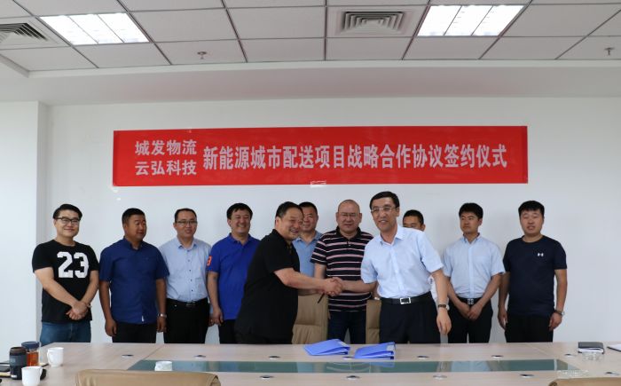 2018年5月16日下午,城發(fā)物流公司與內(nèi)蒙古云弘科技有限責(zé)任公司就新能源城市配送項目簽訂了戰(zhàn)略合作協(xié)議。