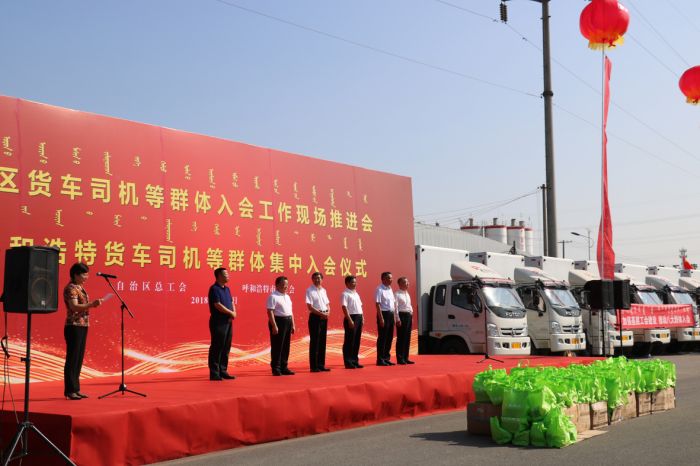 2018年8月22日,自治區(qū)總工會和呼和浩特市總工會共同組織了全區(qū)貨車司機(jī)等群體入會工作現(xiàn)場推進(jìn)會暨呼和浩特貨車司機(jī)等群體集中入會儀式。城發(fā)物流公司黨支部書記楊福平,總經(jīng)理丁雪峰,副經(jīng)理王亮、侯禎攜公司貨車司機(jī)等工作人員共同參加了儀式。隨著自治區(qū)人大常委會副主任、總工會主席吳團(tuán)英等相關(guān)領(lǐng)導(dǎo)入場,入會儀式正式開始。