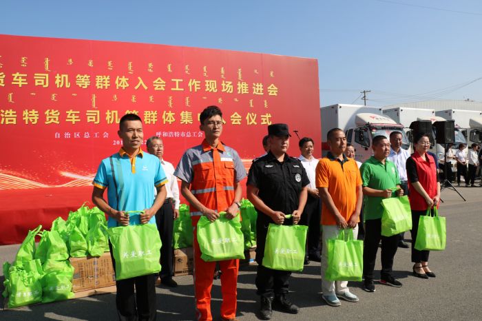 在場的各位領(lǐng)導(dǎo)、貨車司機(jī)等工作人員共同聽取了自治區(qū)總工會關(guān)于貨運司機(jī)等群體的入會報告后,激情昂揚(yáng)的宣讀了入會誓詞。自治區(qū)、呼市兩級總工會的各位領(lǐng)導(dǎo)向與會的各單位頒發(fā)了工會會員證,并向入會貨車司機(jī)發(fā)放了慰問品。