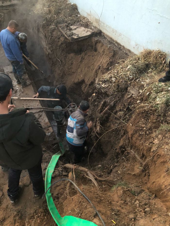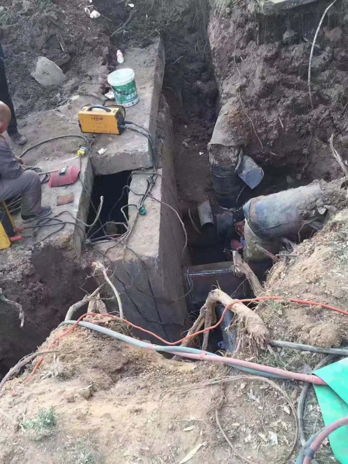 11月11日下午,中繼泵房專項(xiàng)高壓電閃落,1#、2#、3#循環(huán)泵因自動(dòng)保護(hù)驟停。出現(xiàn)異常后,調(diào)度立即通知京能電廠降頻,檢修車(chē)間立即組織人員進(jìn)行巡線,經(jīng)過(guò)15個(gè)小時(shí)不間斷排查,12日上午,發(fā)現(xiàn)如意舊網(wǎng)主線和1#站支線漏水嚴(yán)重。分公司檢修車(chē)間、運(yùn)營(yíng)二所和保駕護(hù)航單位迅速制定搶修方案組織搶修,經(jīng)理丁成斌、副經(jīng)理鄭紅飛親自到現(xiàn)場(chǎng)指導(dǎo)搶修工作。為準(zhǔn)確找到失水點(diǎn),搶修人員穿著隔熱服進(jìn)入管溝內(nèi)查找漏點(diǎn)。由于漏水點(diǎn)管線錯(cuò)綜復(fù)雜,施工難度非常大。接近管道時(shí),發(fā)現(xiàn)漏點(diǎn)位置靠近井壁且管道腐蝕嚴(yán)重,壁厚較薄,采取整理外層補(bǔ)焊的方式進(jìn)行修補(bǔ)。