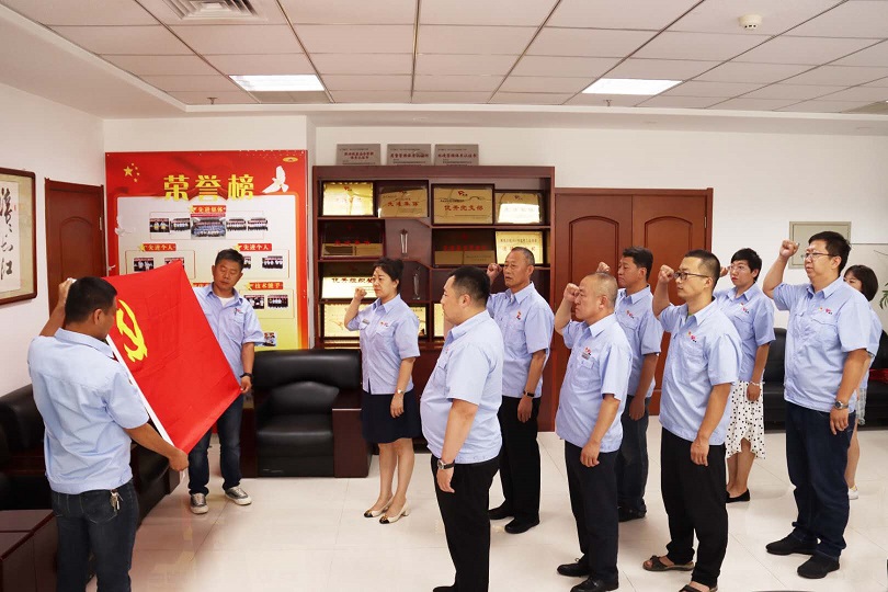 物業(yè)公司黨支部按照發(fā)展黨員的組織程序,吸收新鮮血液,充實(shí)了組織力量,今年按期轉(zhuǎn)正1名黨員,吸收了1名預(yù)備黨員。組織委員郝曉東同志為預(yù)備黨員史濤同志佩戴了黨徽,面對鮮紅的黨旗,在領(lǐng)誓人娜仁同志的逐句領(lǐng)讀下,史濤用慷慨激昂的語氣,莊嚴(yán)向黨旗宣誓,表達(dá)對黨的忠誠、為共產(chǎn)主義奮斗終身的決心,并表示,一定會珍惜共產(chǎn)黨員的光榮稱號,不負(fù)使命,立足崗位、踏實(shí)工作、謹(jǐn)守誓言、履行黨員義務(wù),為黨增光添彩!