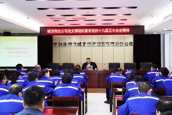12月1日下午,城發(fā)物業(yè)公司黨支部在集團(tuán)十八樓會(huì)議室,邀請(qǐng)市委黨校社會(huì)管理與文化教研室主任孫忠輝副教授宣講黨的十九屆五中全會(huì)精神。城發(fā)物業(yè)公司、物流公司、房地產(chǎn)公司、客運(yùn)公司、管網(wǎng)公司等領(lǐng)導(dǎo)班子成員、黨員干部80余人參加學(xué)習(xí),城發(fā)公司黨委副書(shū)記張永、城發(fā)公司副總經(jīng)理王觀法到會(huì)聽(tīng)課。