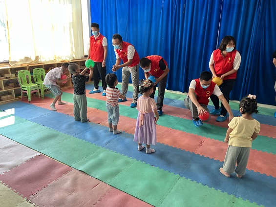 活動現場,愛心小分隊一行將精心準備的慰問品送到孩子們的手中,與他們親切交談,參觀孩子們學習、生活的環(huán)境,詳細了解孩子們的學習、生活狀況。隨后,愛心小分隊與孩子們進行了搶板凳、接皮球等互動游戲,在歡聲笑語中,志愿者與孩子們結下了深厚的友誼。